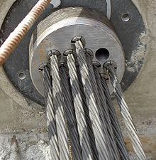 Cốt thép trong bê tông, là cốt thép cường độ cao, được kéo căng ra bằng máy kéo